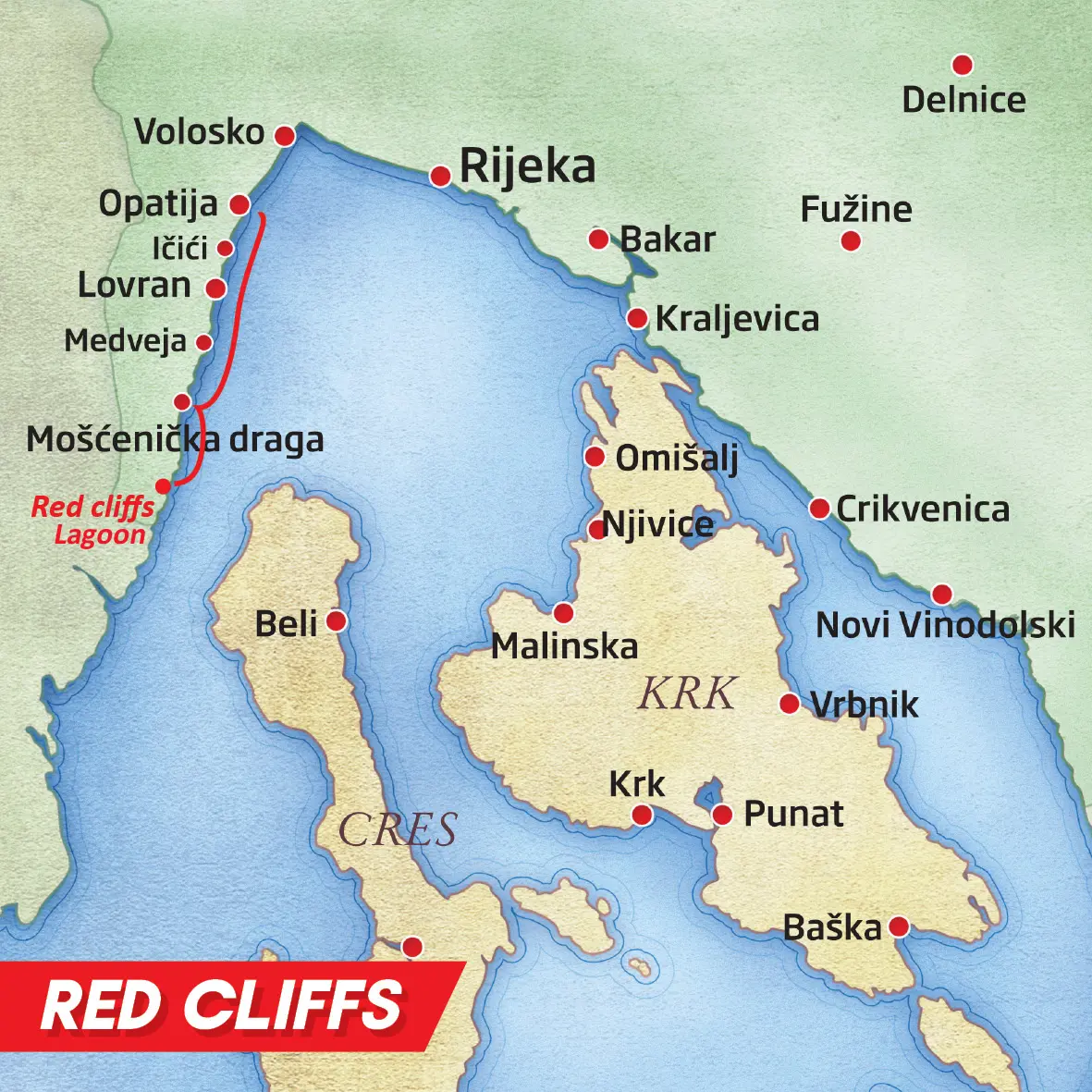 A cruise along the enchanting coastline of Opatija, Ika, Ičići, Lovran, Mošćenička Draga and Red Cliffs (Lagune) offers breathtaking views of picturesque seaside towns and lush landscapes. Enjoy a refreshing swim or snorkeling adventure in crystal-clear waters, with plenty of time to relax and soak up the beauty of this unspoiled Adriatic paradise.